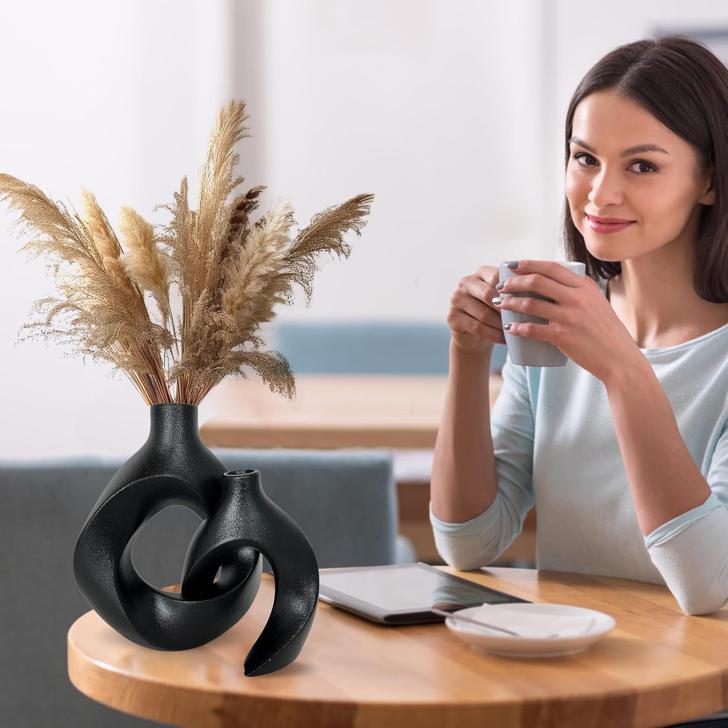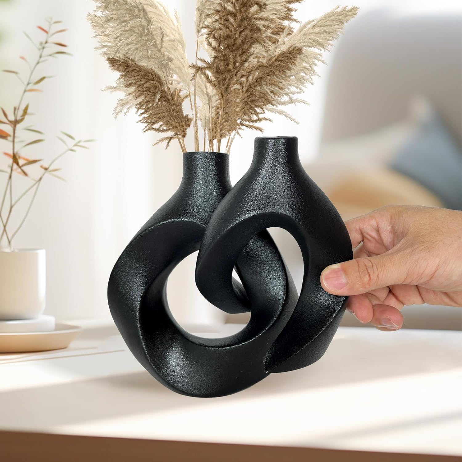 Set di vasi dal design minimal con finitura opaca, ideali per decorare soggiorno, camera o tavolo da pranzo. Comprende due dimensioni (8″ e 6″), perfetti per aggiungere un tocco elegante e contemporaneo a qualsiasi ambiente.